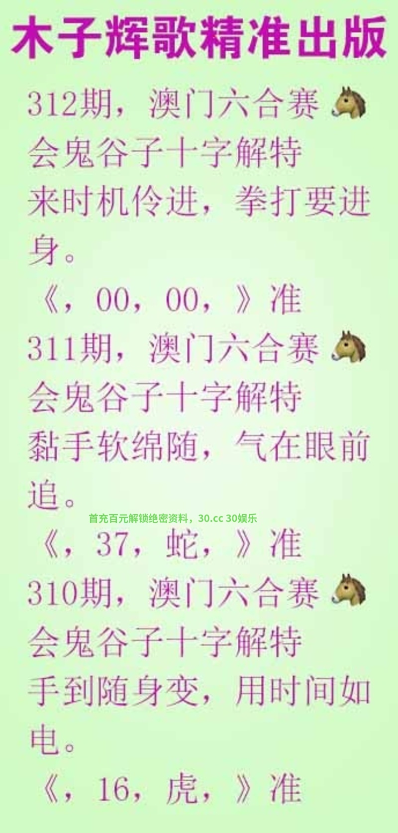 305期七尾▓1234578▓开:鼠42中 306期七尾▓0235679▓开:牛17中 307期七尾▓0234589▓开:狗20中 308期七尾▓0346789▓开:兔39中 309期七尾▓1245678▓开:鼠06中 310期七尾▓0123467▓开:虎16中 311期七尾▓2346789▓开:蛇37中 312期七尾▓0134578▓开:龙14中 313期七尾▓2456789▓开:發00中 澳门木子辉歌【澳门跑马图】9715888.com 312期 311期 310期 309期 308期