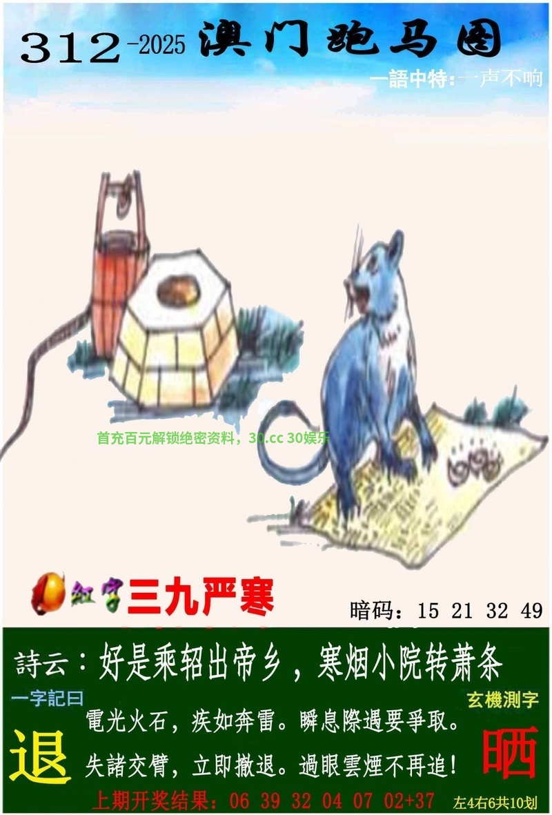 312期【平特一肖】🍀鼠鼠鼠🍀开:鼠18中